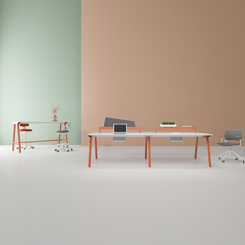 1、基材:環(huán)保等級符合E0級標(biāo)準(zhǔn)的MFC板; 2、臺面斜邊處理,暗拉手裝飾條果橙色,其余實木麻白; 3、五金腳靜電噴涂果橙色細(xì)砂紋; 4、臺面配R93白色長條形線蓋,小柜配密碼鎖和散熱風(fēng)扇。 注:價格不含桌屏(有磨砂玻璃、吸音板、布選配)